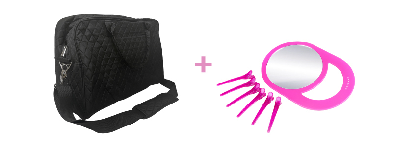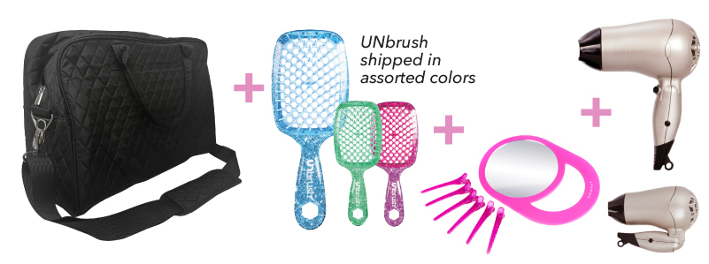 Stylist Tote Bag + Pink Mirror with clips set + Glitter UNbrush® Detangler + Ultra Smooth Travel Dryer