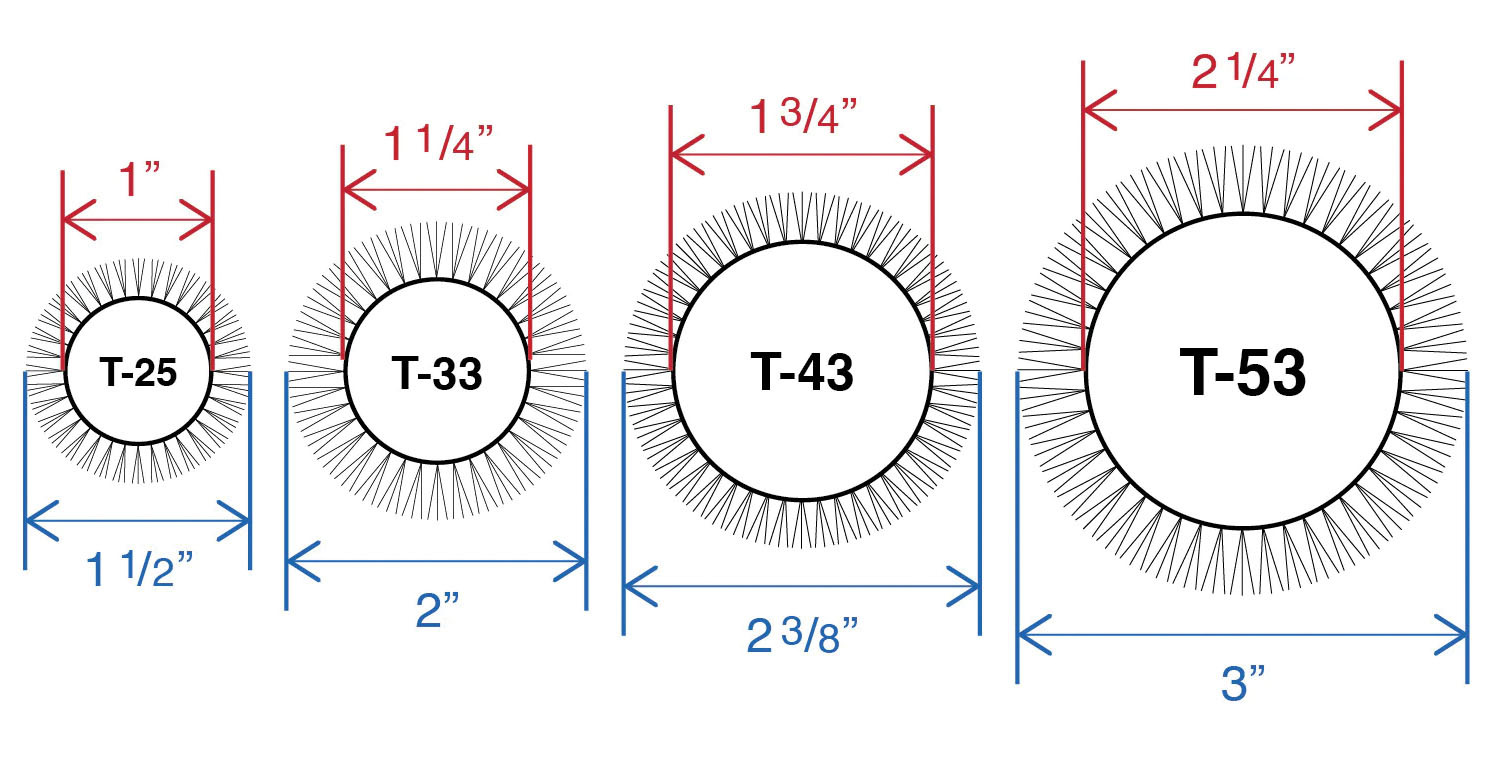 - Box set includes 4 brushes: T-25 (1"), T-33 (1.25"), T-43 (1.75"), T-53 (2.25")